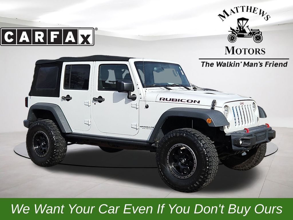 **Save time, Buy Online with Matthews Motors Express Point.Click.Buy**We have over 300 certified pre-owned vehicles, most come with a lifetime powertrain, engine and transmission warranty. There's a variety of reasons why our customers continue to return to our 4 conveniently located showrooms throughout North Carolina. Which are a few of the reasons we have been awarded CIADA Quality Dealer of The Year and the BBB Torch Award Winner. Here at Matthews Motors we're committed to providing the ultimate automotive dealership experience.Low Miles, Heated Seats, Navigation, Leather Interior, Accent Stitching, Alpine 9-Speaker w/All Weather Subwoofer, Black/Chrome Screws Fuel Filler Door, Brake assist, Chrome/Leather Wrapped Shift Knob, Class II Receiver Hitch, Connectivity Group, GPS Navigation, Hood w/Power Dome, Jeep Trail Rated Kit, Leather Trimmed Bucket Seats, Max Tow Package, MOPAR Slush Mats, Premium Black Sunrider Soft Top, Premium EVIC Message Center, Quick Order Package 24J Rubicon Hard Rock (DISC), Red Front & Rear Tow Hooks, Red Trail Rated Badge, Remote USB Port, Rubicon Hard Rock Package, Rubicon Hood Decal, Silver Interior Accents, Steel Front Bumper, Steel Rear Bumper, Tire Pressure Monitoring Display, Trailer Tow w/4-Pin Connector Wiring, Uconnect Voice Command w/Bluetooth, Vehicle Information Center, Wheels: 17" x 7.5" Polished Semi-Gloss Blk (DISC).Odometer is 5500 miles below market average!